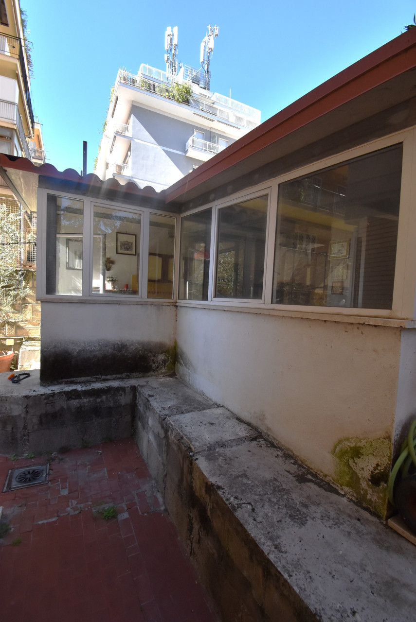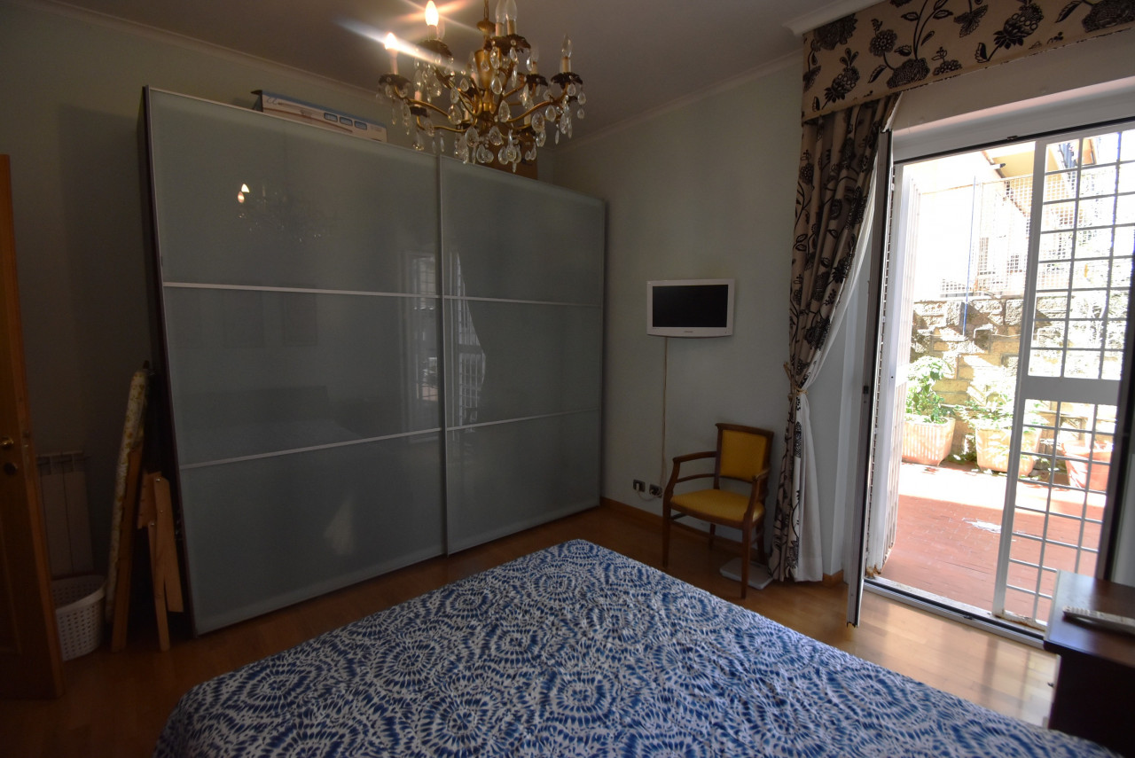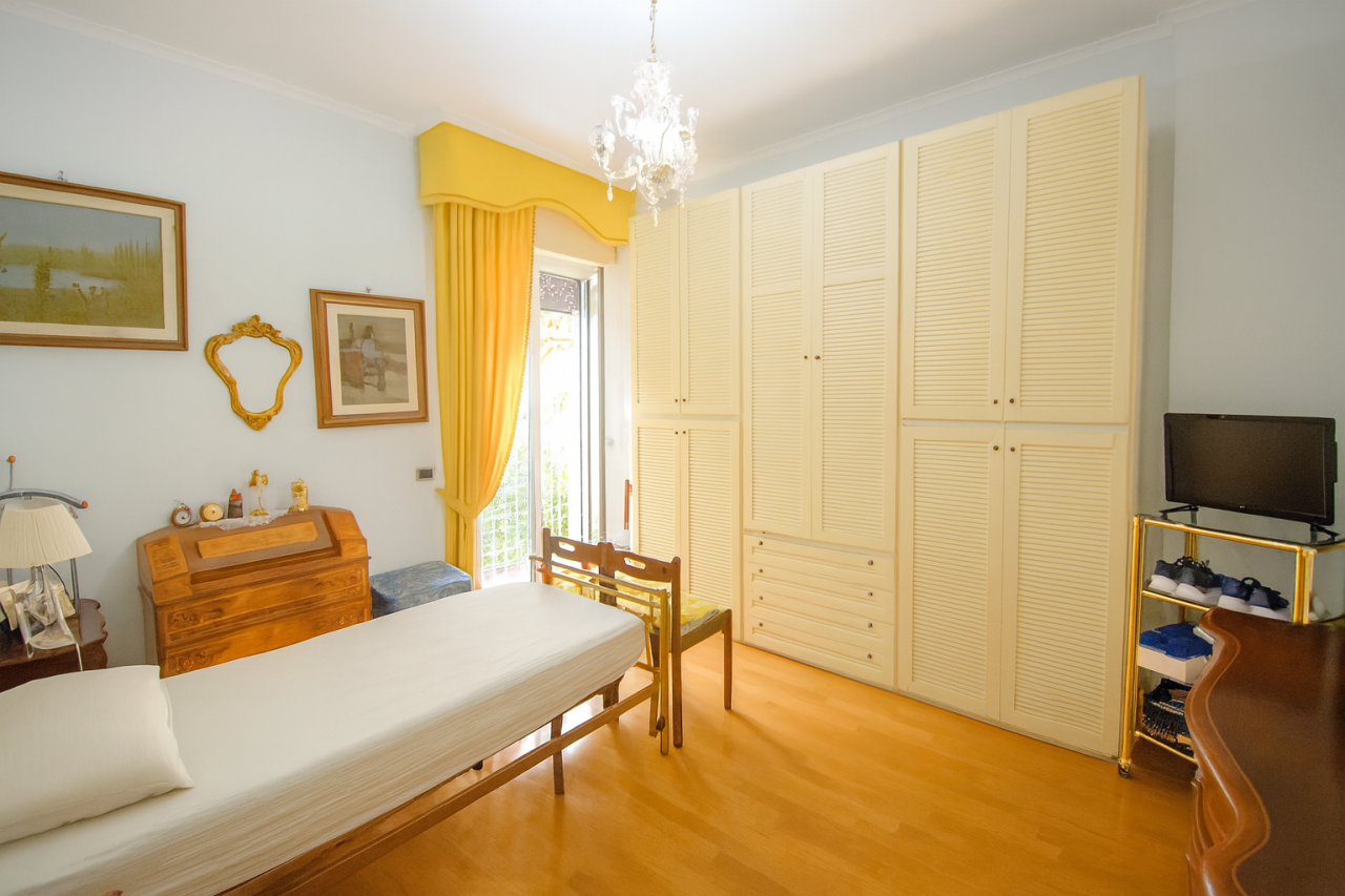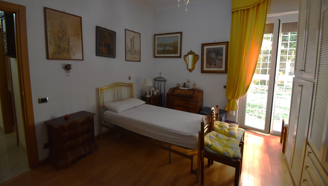 L'immobile, che include anche un giardino perimetrale e una depandance, ha una superficie interna di 115 mq. ed è stato recentemente ristrutturato. L'appartamento, luminosissimo e silenzioso grazie agli affacci interni, è composto da grande salone con armadio a muro e ampie finestre, cucina abitabile, corridoio che separa la zona notte con 2 spaziose camere da letto e servizio.