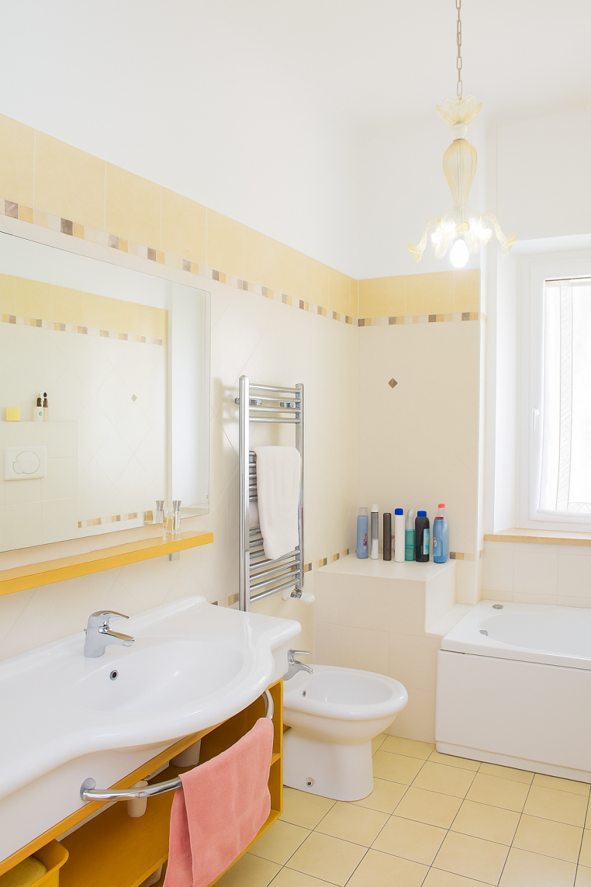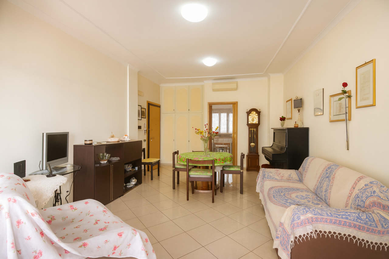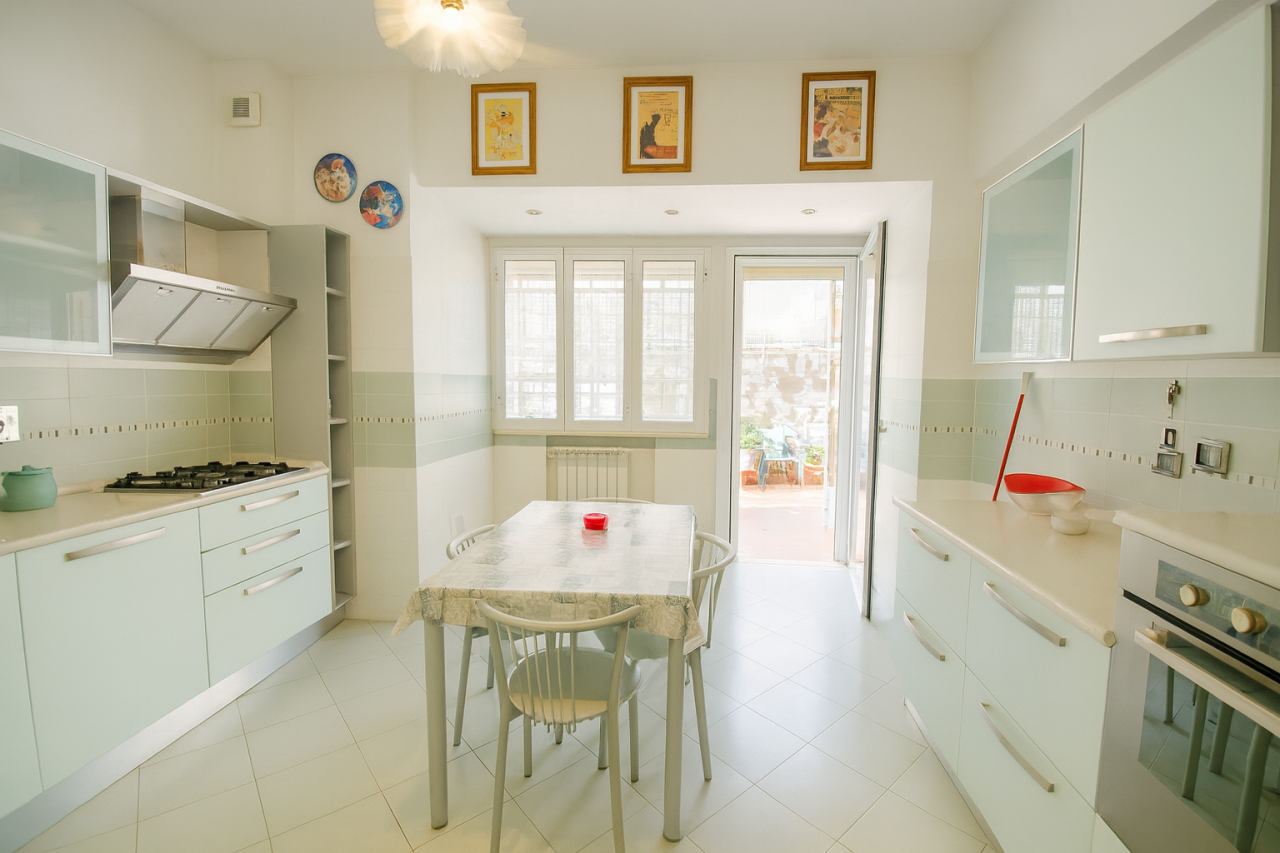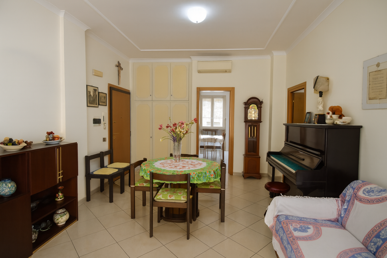 L'immobile, che include anche un giardino perimetrale e una depandance, ha una superficie interna di 115 mq. ed è stato recentemente ristrutturato. L'appartamento, luminosissimo e silenzioso grazie agli affacci interni, è composto da grande salone con armadio a muro e ampie finestre, cucina abitabile, corridoio che separa la zona notte con 2 spaziose camere da letto e servizio.