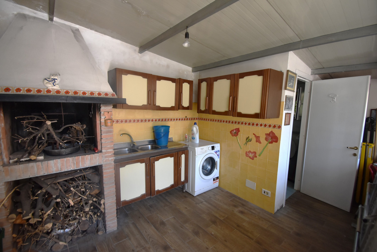 Il giardino perimetrale comprende anche la depandance con angolo cottura, camino e servizio e permette tramite cancello scorrevole di poter parcheggiare comodamente al suo interno due vetture.
